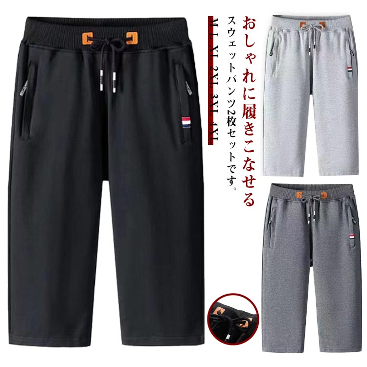 2枚セット メンズ スウェットパンツ 7分丈 夏 ジャージ 下 短パン ズボン おしゃれ クロップドパンツ 大きいサイズ 通気 ゴルフウェア ジョガーパンツ 半ズボン ショート ジャージパンツ
