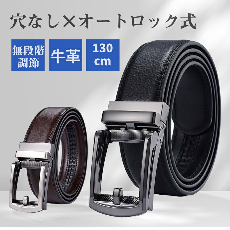 大きいサイズ オートロックベルト 無段階 レザー 本革 穴無 長い 穴なし 130cm 紳士用ベルト メンズ サイズ調整可能