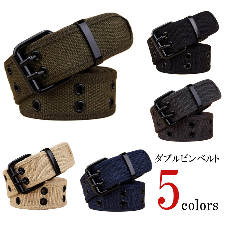 メンズ ダブルピン ベルト コットンキャンバス ダークカラー ワークスタイルにもOK 全5色 カジュアルにも