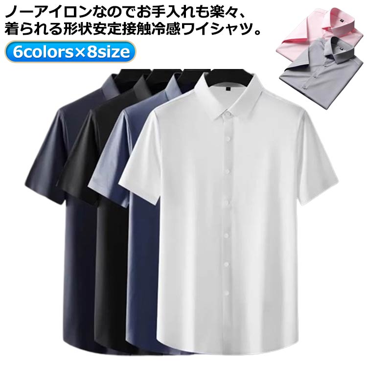 ワイシャツ 半袖 シャツ メンズ 接触冷感 アイスシルク ストレッチ ノーアイロン シワにならない Yシャツ ビジネス 冷感 ひんやり 涼しい 結婚式 お葬式 フォーマ リクルート