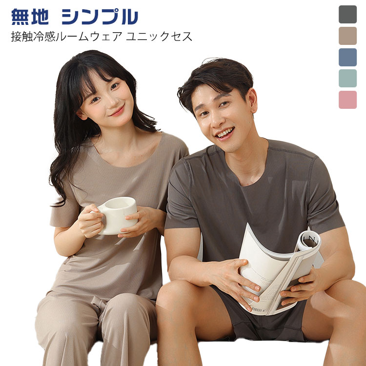 接触冷感 ハーフパンツ セット ゆったり ルームウェア メンズ レディース 上下セット 春夏 半袖 部屋着 ロングパンツ 抗菌防臭 寝間着 シームレス 可愛い 無地 ナイトウエア 涼しい ひ シンプル