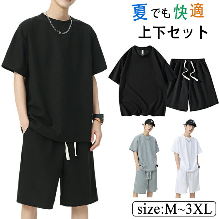 ジャージ メンズ 上下 セット 夏服 tシャツ 半袖 ハーフパンツ セットアップ 夏 無地 カジュアル スウェット シンプル おしゃれ スポーツウェア ゆったり 着心地 サマーシャツ 部屋着