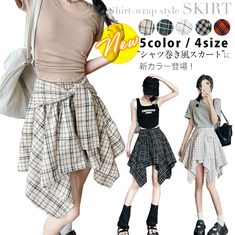 ショートトップス ミニスカート レディース ダンス へそ出し クロップド丈 半袖 クロス リボン 不規則 巻きスカート風 チェック スカート チアリーダー 衣装 デート チア