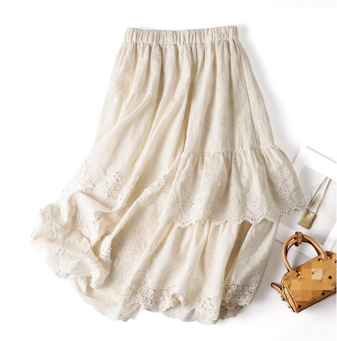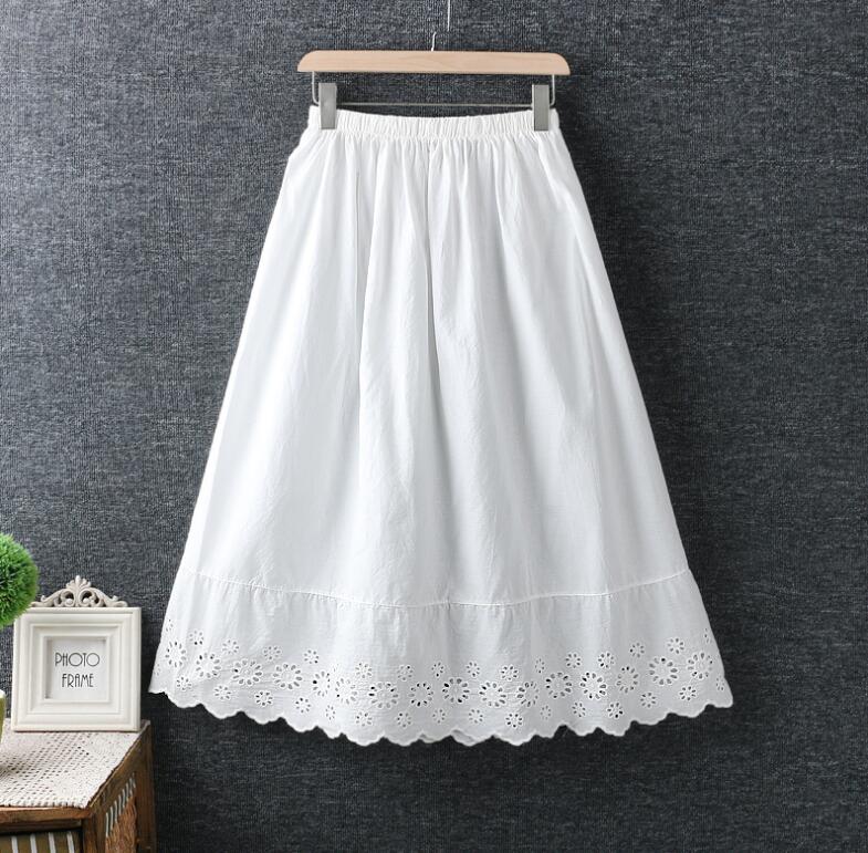レーススカート 森ガール 花柄スカートペチコート ぺチスカート ロング フリル フリル付き コットン インナー ゆったり 綿 透け防止 透けない ナチュラル