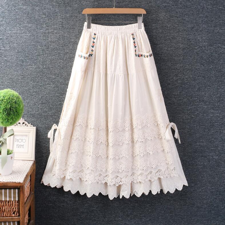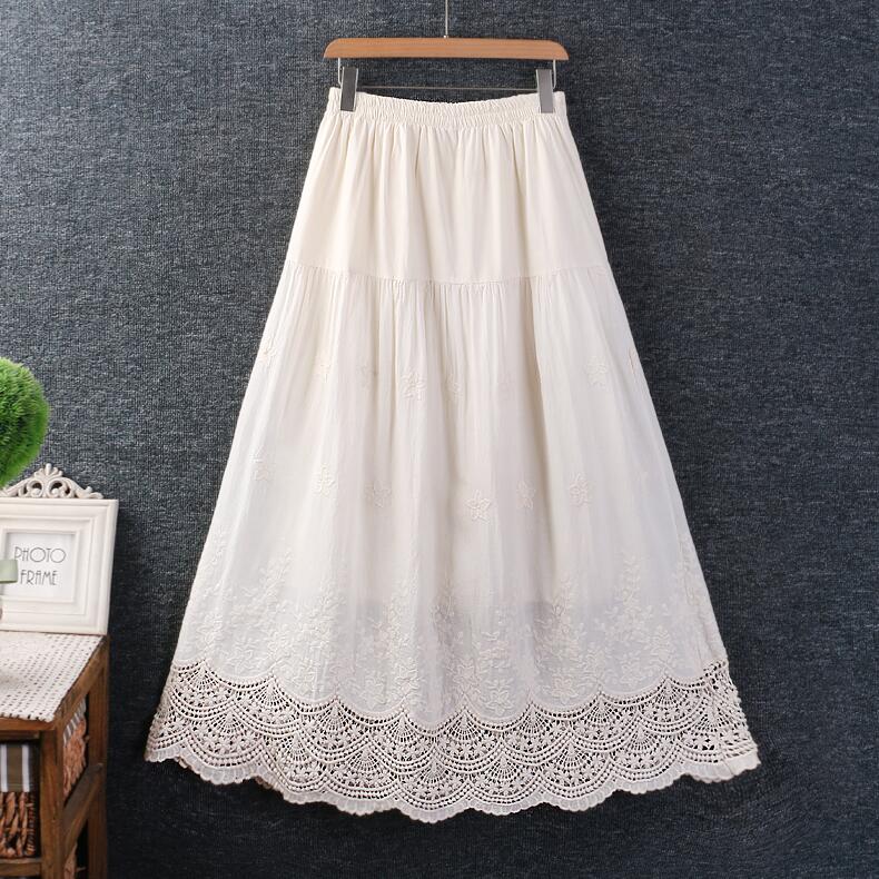 レーススカート 森ガール ペチコート ぺチスカート ロング フリル フリル付き コットン インナー ゆったり 綿 透け防止 透けない ナチュラル