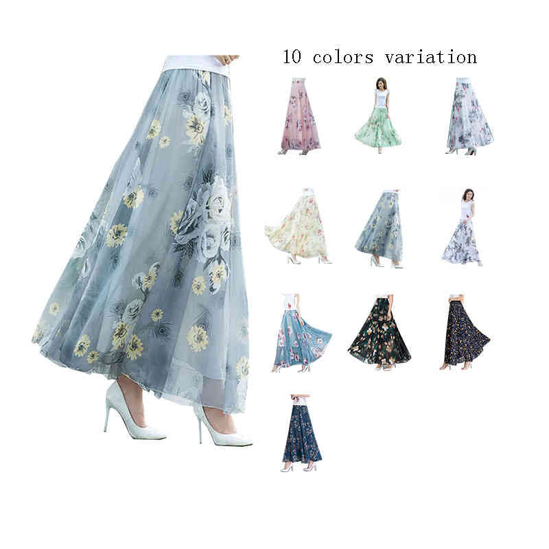 ロングスカート フレアスカート シフォン マキシ丈スカート ビーチスカート ハイウエスト レディース 花柄 ボトムス ピーチスカート 体型カバー フレア ボヘミアン風 大きサイズ