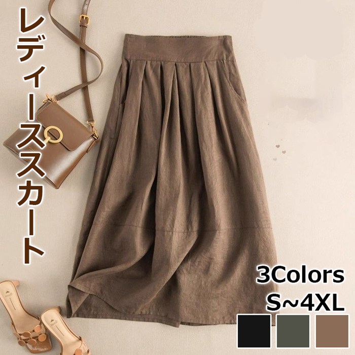 スカート 春夏 フレアスカート 40代 レディース aラインスカー 楽ちん 膝丈 ハイウエスト 黒スカート ボトムス 美脚 大人 韓国風 20代 30代 可愛い