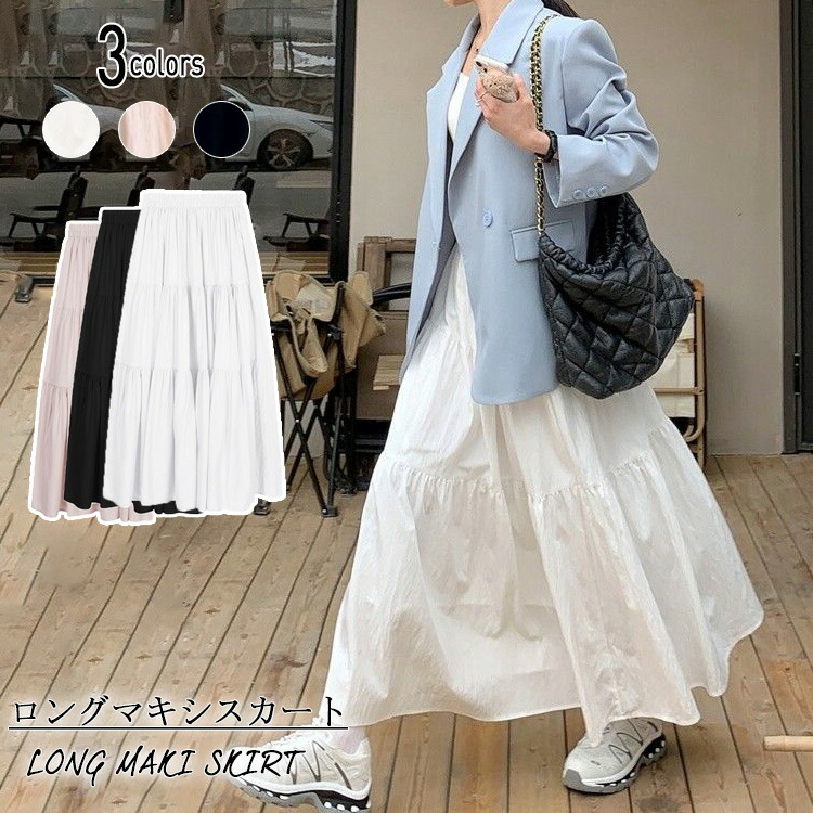 ロングスカート レディース 夏新作 ハイウエスト ミモレ丈 Aライン ティアードスカート ドレープ感 フレンチスタイル フェミニン スカート ボリューム シフォン フレアスカー ロング