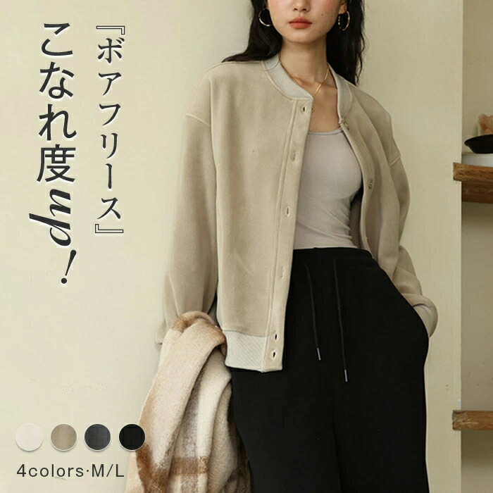 ボア ジャケット レディース フリース ブルゾン もこもこ アウター カーディガン 秋 冬 ジップアップ 裏起毛 厚手 暖かい ふわふわ スタンドカラー 防寒 軽量 可愛い ルー 無地