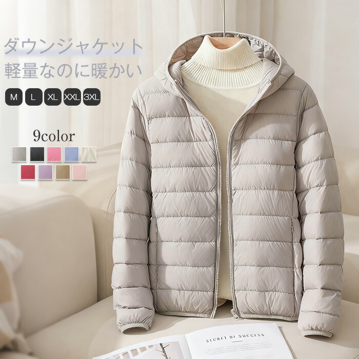 オシャレくて、軽い!防風防寒 暖かい ダウンコート アウター 秋冬 レディース ダウン 着痩せ 真冬 フォーマル デイリー 普段使い 細見え ダウンジャケット フード付き シンプル