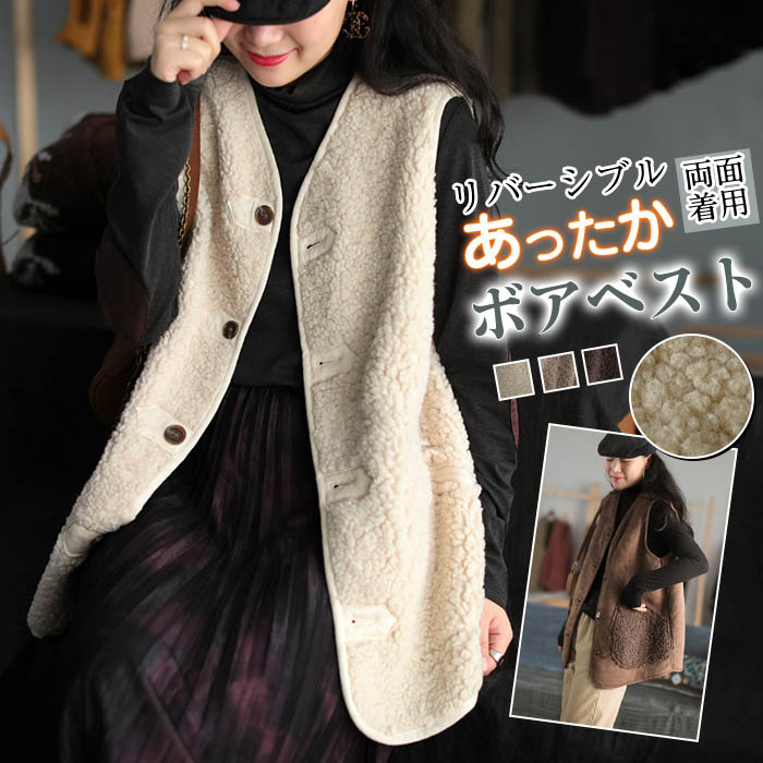 ベスト ボアベスト 秋冬 アウター ムートン もこもこ トリバーシブル レディース