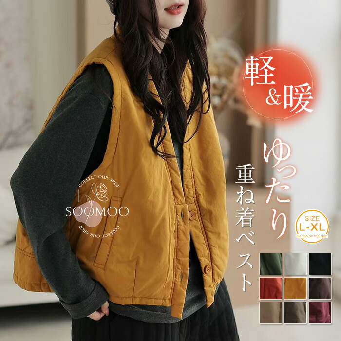 キルティングベスト レディース ベスト 秋冬 中綿ベスト 軽い トップス 前開きベスト ノースリーブ 羽織 ライトアウター 無地 シンプル レイヤード 重ね着 ゆったり 大きいサイズ カジュアル 防寒