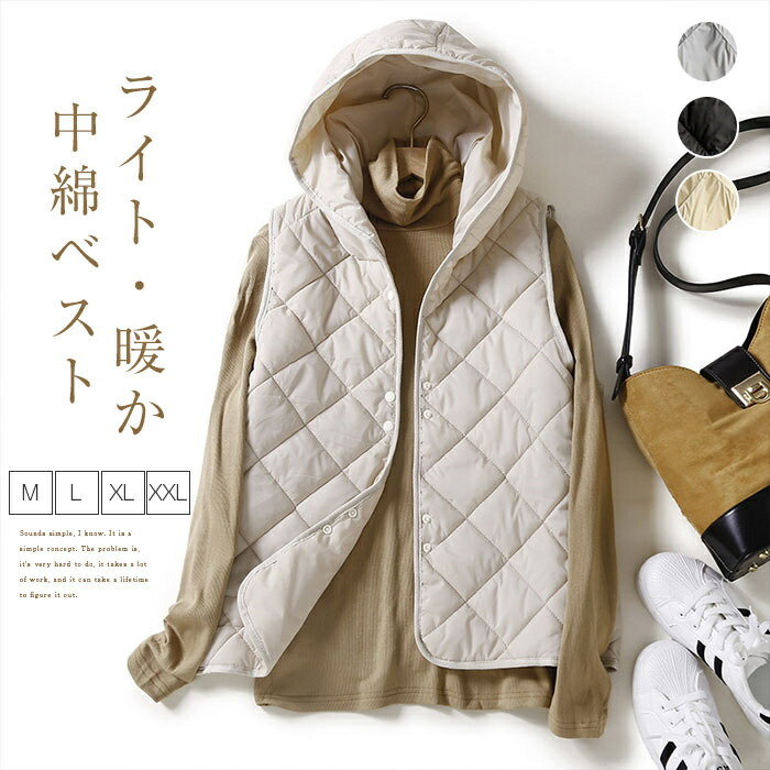 中綿ベスト ライトアウター レディース ダウンベスト シンプルデザインで着回し力抜群!