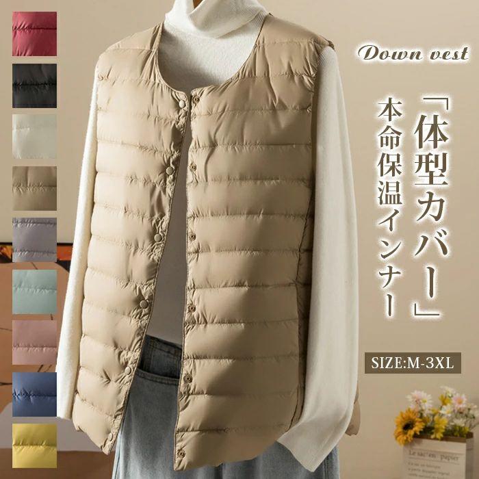 ライトダウン インナーダウン ベスト ダウンコート ダウンジャケット アウター 上着 ダウンベスト レディース 大人 軽量 暖かい 黒 秋 冬 春 大きサイズ 無地 シンプル ショート丈 薄い