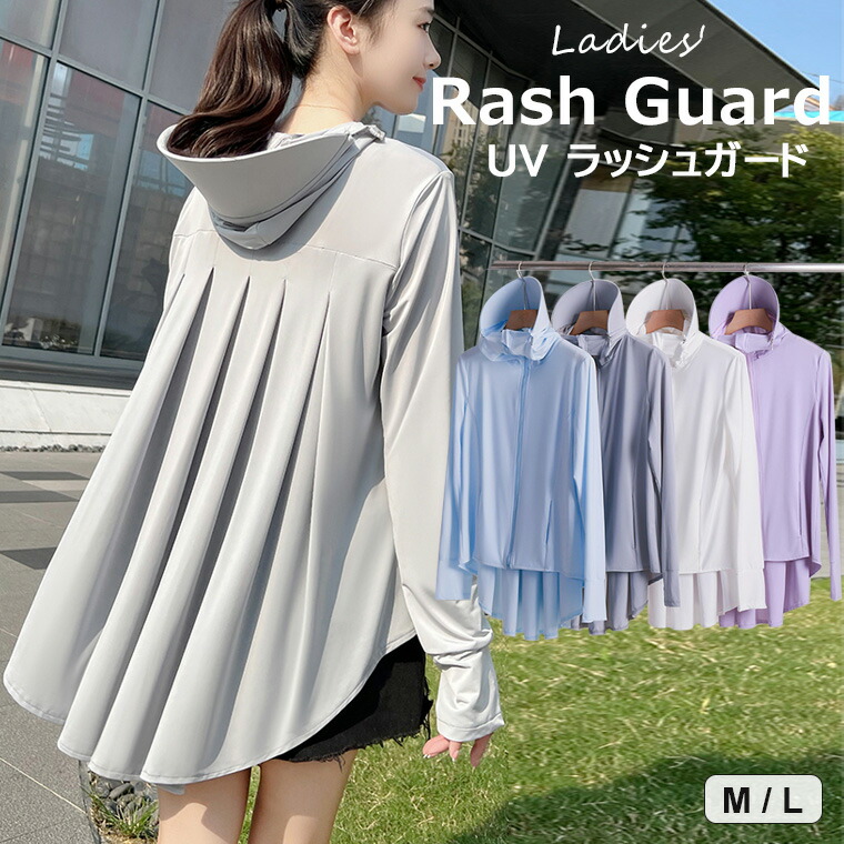 暑い時期にもさらりと軽く涼しく着られる 選べる2種類 日焼け止め服 長袖 ラッシュガード レディース パーカー 体型カバー つば広 ゆったり 指穴 キャンプ 自転車用 旅行 アウトドア