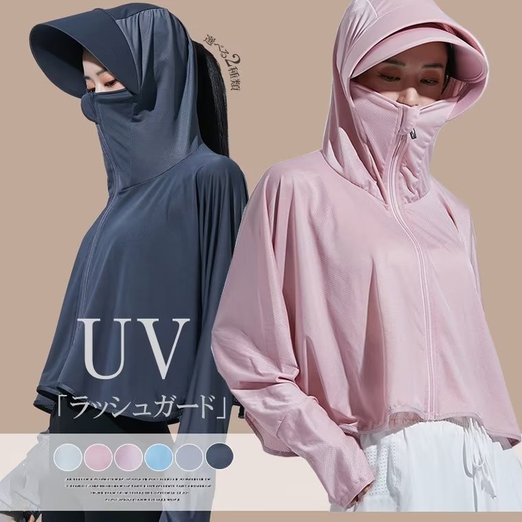 UVカット ボレロ パーカー レディース 接触冷感 フェイスカバー 日除け帽子 ポンチョ UPF50+ 日焼け止め 紫外線対策 アウトドア ラッシュガード