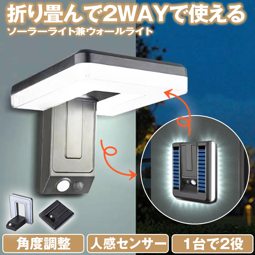 ソーラーライト センサーライト 屋外 防水 ウォールライト ガーデンライト 人感センサーライト 角度調整 折りたたみ 明るい ソーラーセンサーライト LEDライト 防犯 ライト 防災 人感センサー