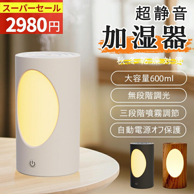 加湿器 卓上加湿器 小型加湿器 アロマ対応可 空焚き防止機能あり アロマディフューザー 大容量 ナイトライト 乾燥対策 安い 段階調整 簡単操作 ホワイト ブラック 木調 ギフト プレゼント