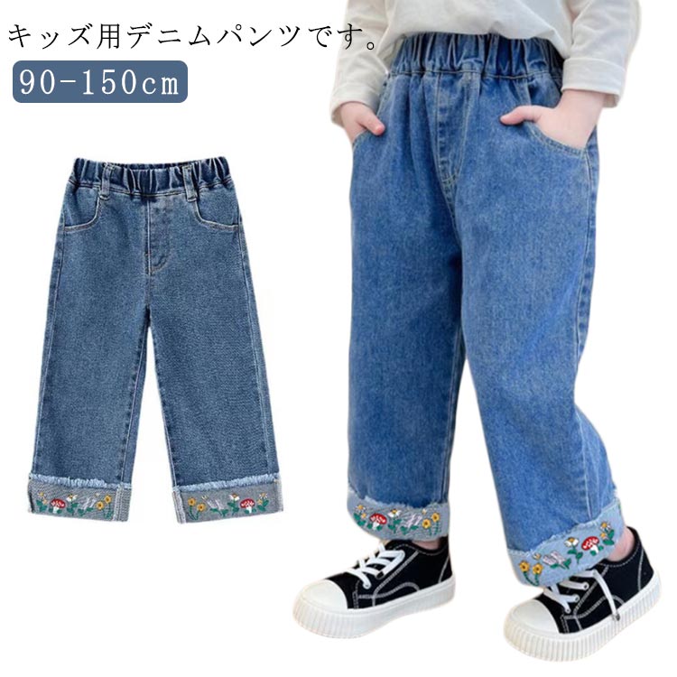 キッズ 女の子 デニム パンツ ボトムス 子供用パンツ 子供服 ワイドパンツ