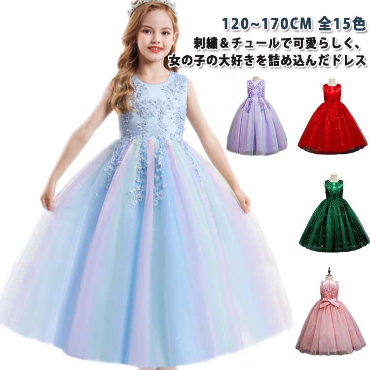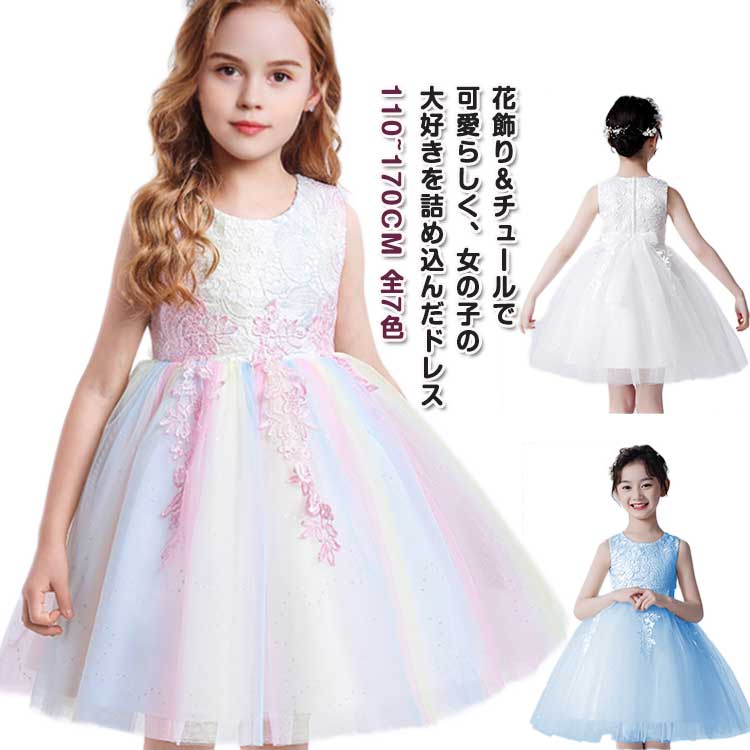 ドレス 結婚式 ピアノ 110 発表会 ワンピース 120 150 キッズ 170 虹色 キラキラ 130 中学生 子供 160 女の子 140 花 子供ドレス 演奏会ドレス キッズド スパンコール