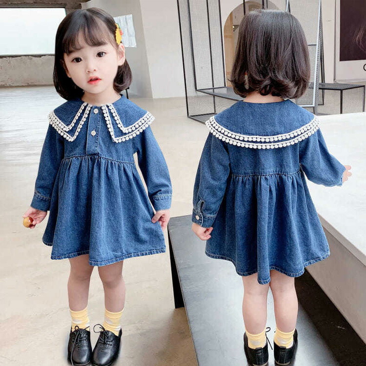 ワンピース 女の子 長袖 デニムワンピース 膝丈 Aライン子供 こども キッズ ベビー ジュニア かわいい 春 秋 新作 綿