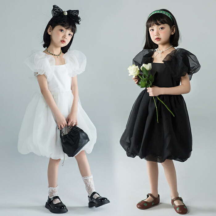 ワンピース 女の子 半袖 お姫様ドレス パフスリーブ 夏 新品 韓国子供服 キッズ チュールスカート 演奏会 パーティー 入学式 卒業式 発表会 七五三 おしゃれ 可愛い ホワイト ドレス