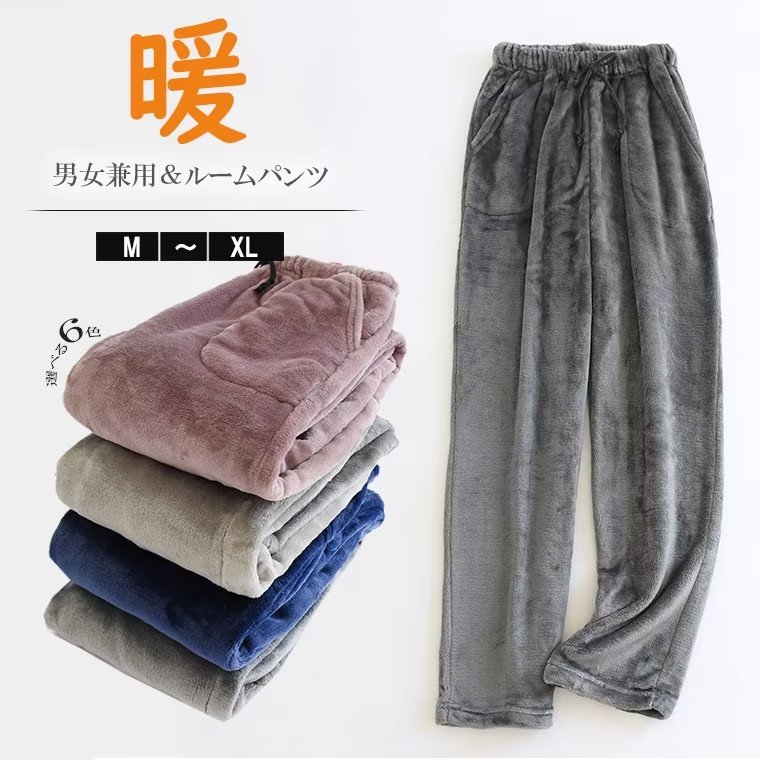 起毛肌触りが気持ちいい 全6色 ルームパンツ ペアパジャマ 起毛 ロングパンツ ルームウェア レディース メンズ 部屋着 ナイトウェア ポケット付き パンツ リラックス ボトムス ゆったり