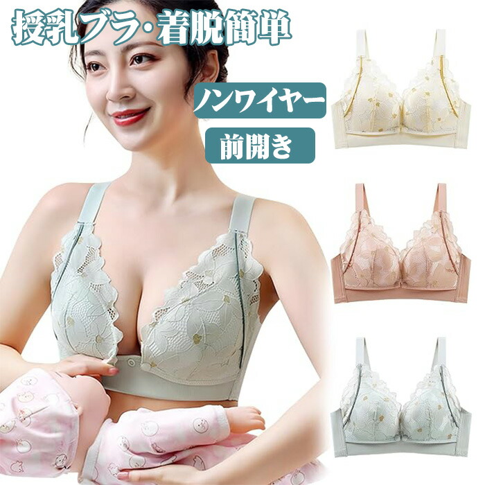 授乳ブラ マタニティブラ 前開き授乳簡単ブラジャー ナイトブラ ノンワイヤー 垂れ防止 脇高設計 授乳ブラジャー 綿 コットン 伸縮性 大きいサイズ 可愛い 授乳 レース フロン 前開きブラ