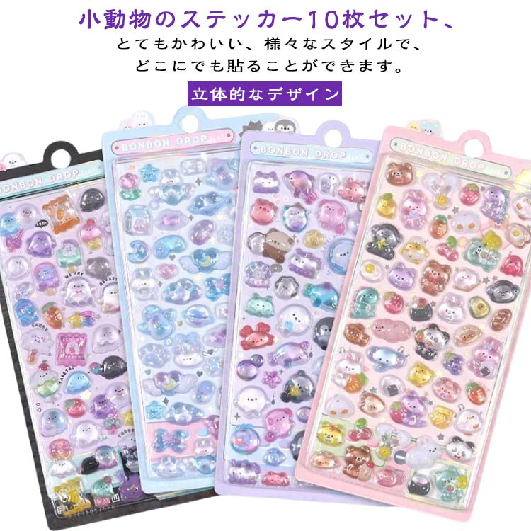 ぷくぷくシール 可愛い 10枚 ボンドロップ シール ぷっくり 装飾用 ごほうび ステッカー 猫 うさぎ くま 立体 用 手帳 アルバム スマホケース