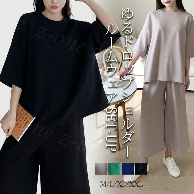 ルームウェア セットアップ レディース 上下セット パジャマ ドロップショルダー マイクロファイバー 春新作 ゆったり 部屋着 半袖 スーツ 冷感 寝巻き