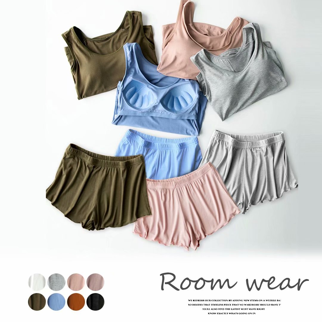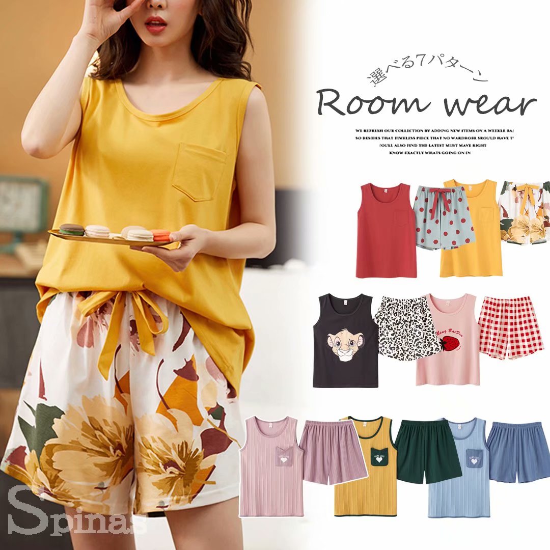 シンプルな無地からポップなプリント柄まで 無地×柄 ルームウェア タンクトップ ショートパンツ 部屋着 オシャレ 上下セット