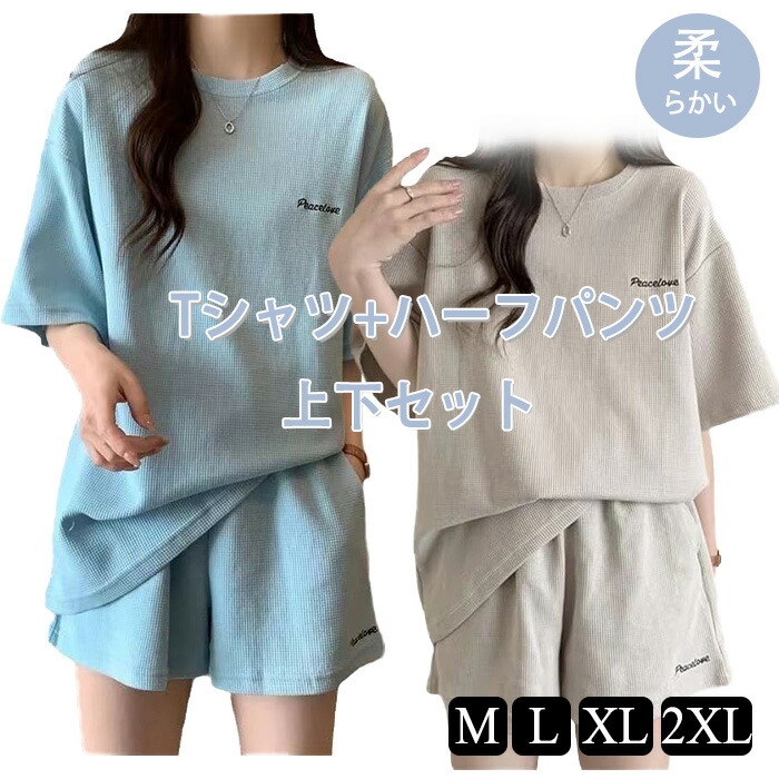 部屋着 寝巻き パジャマ 家着 セットアップ レディース 夏 ルームウェア 外出 可愛い かわいい 半袖 Tシャツ 上下セット スポーツウェア ランニングウェア ショートパンツ