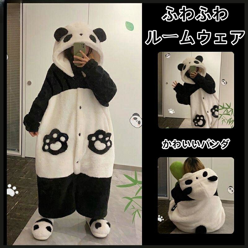 パンダパジャマ パンダ 可愛い ペア パジャマ もこもこ ルームウェア 着る毛布 動物 冬用 ワンピース 上下セット 長袖 前開き ペアパジャマ ペア部屋着 中学生 修学旅行上下 プレゼント