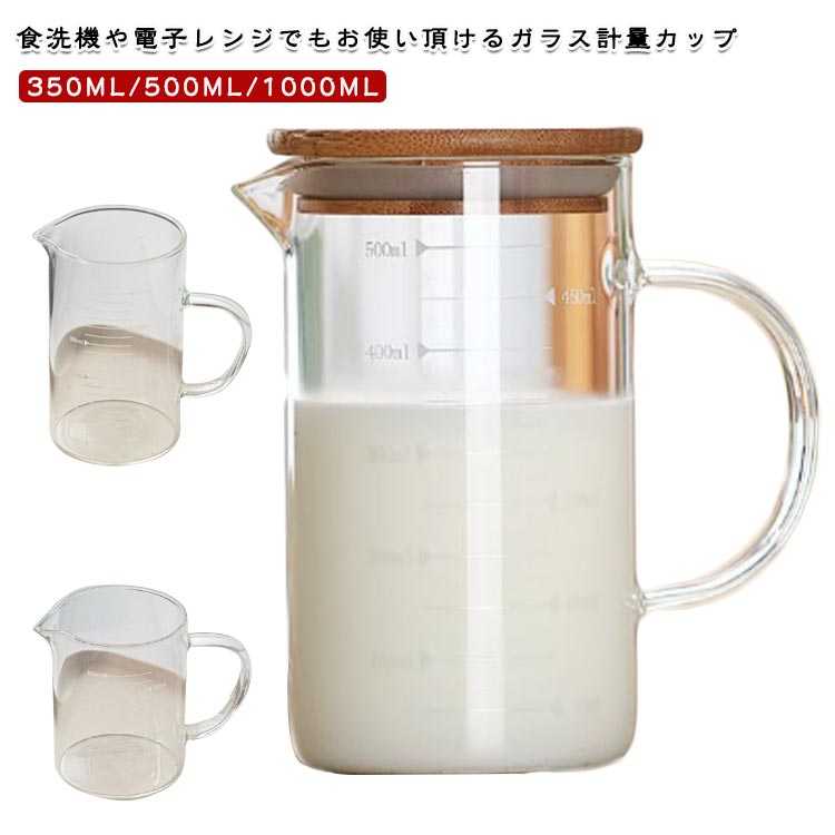 350ml フタ付き 目盛り付き 500ml 計量カップ 1L メジャーカップ 1000ml 製菓道具 竹蓋 注ぎやすい 調理用具 キッチンツール 電子レンジ対応 直火 取っ手付き