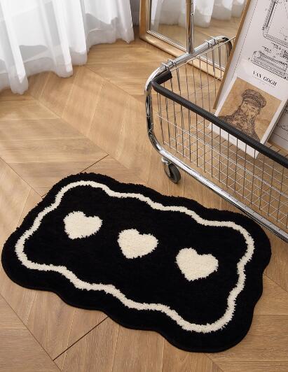 40cm×60cmハート柄バスマット足ふきマットおしゃれ韓国雑貨インテリアマット速乾お風呂北欧絨毯かわいい洗える室内タオル地柔らかい滑り止め吸水シンプル