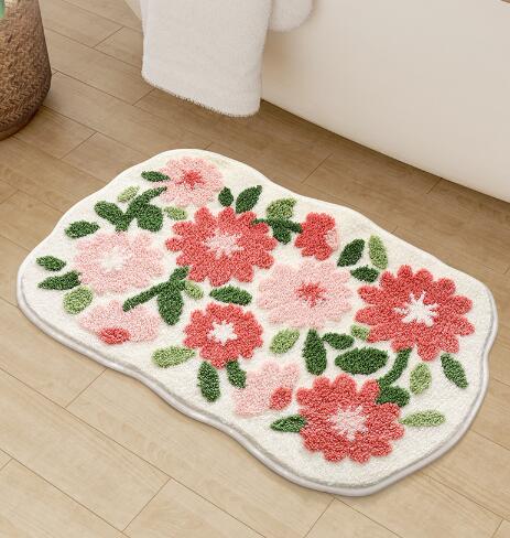 40cm×60cmフラワーバスマット足ふきマットおしゃれ韓国雑貨インテリアマット速乾お風呂北欧絨毯かわいい洗える室内タオル地柔らかい滑り止め吸水シンプル