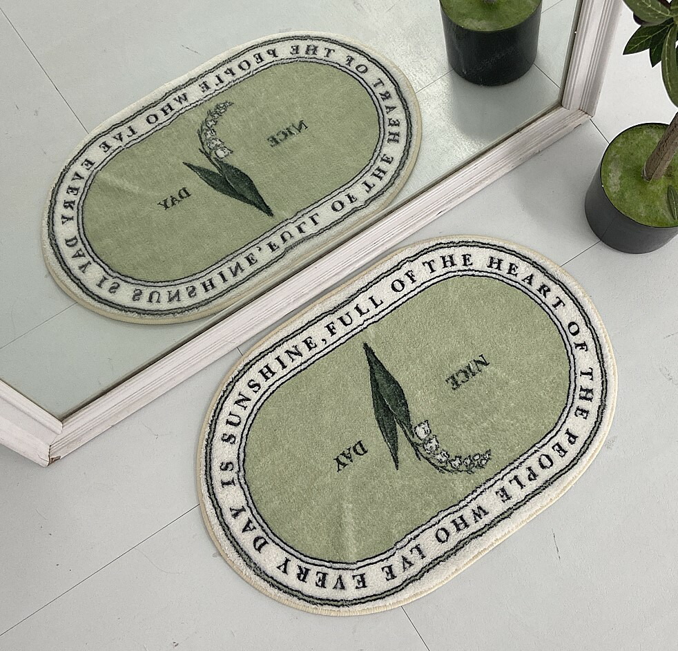 バスマット足ふきマット花柄ロゴおしゃれ韓国雑貨インテリアマットお風呂ホワイト白緑グリーン北欧玄関マット絨毯かわいい洗える室内タオル地柔らかい滑り止めリビング部屋ラグシンプル 40×60可愛い
