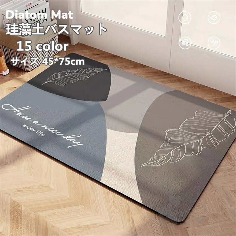珪藻土バスマット 珪藻土マット 足ふきマット 柔らかい 速乾 瞬間吸水 薄い 軽い 抗菌 防臭 調湿 快適 収納に便利 浴室 洗面所 45*70CM 滑り止め付き