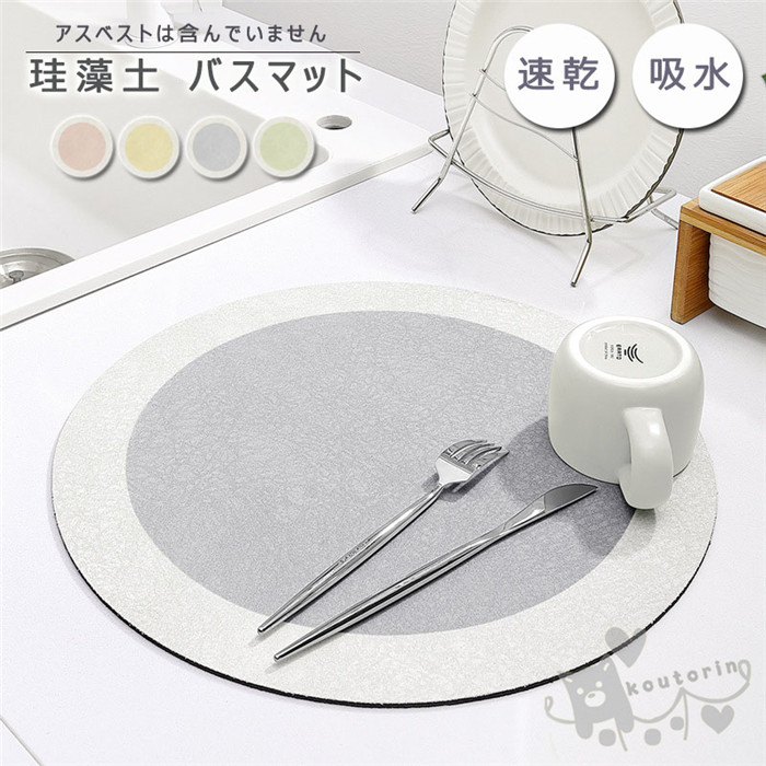 珪藻土 水切りマット キッチンマット ソフトマット 圓型 食器乾燥マット 食器収納 抗菌 速乾吸水 コースター 珪藻土マット 台所用品 滑り止め 35*35cm 45*45cm 洗面所マット