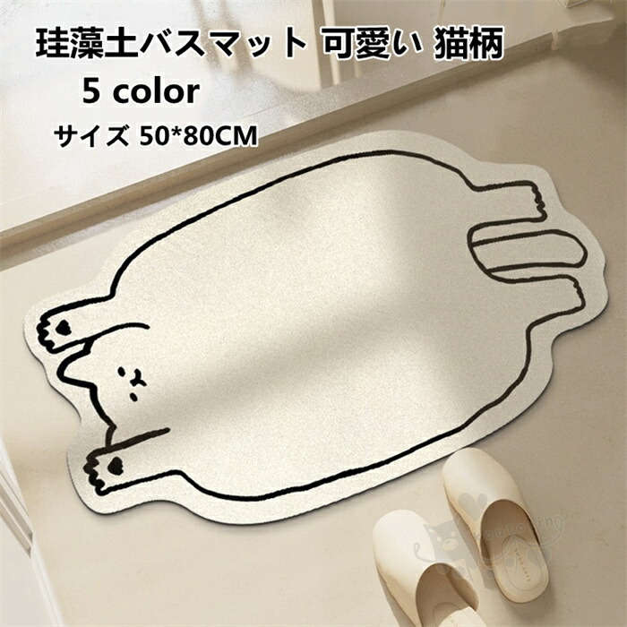 珪藻土バスマット 可愛い 猫柄 珪藻土マット 柔らかい 速乾 瞬間吸水 快適 滑り止め 洗面所マット 50*80CM 収納に便利