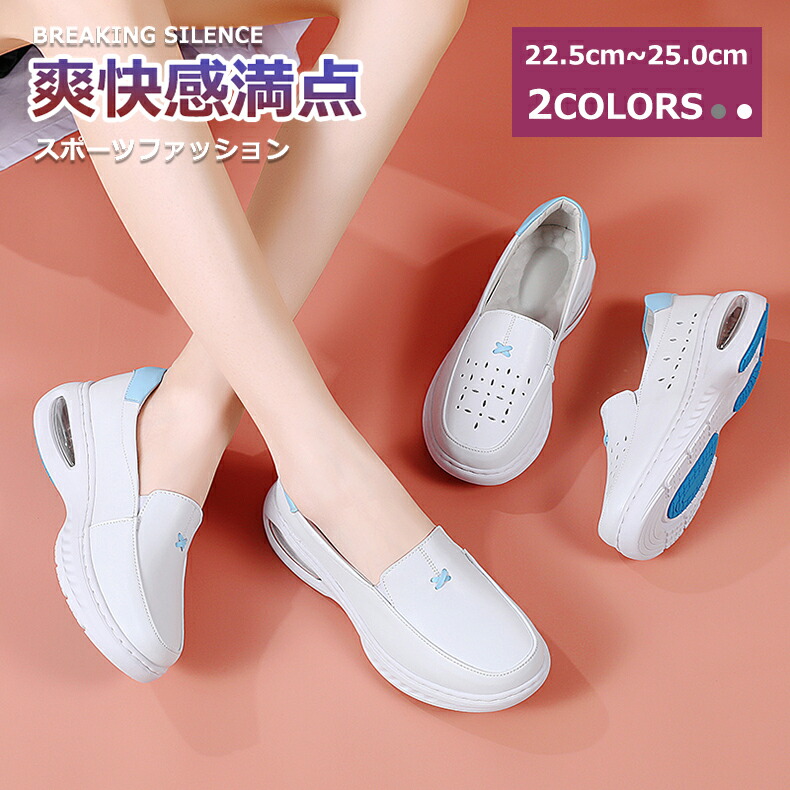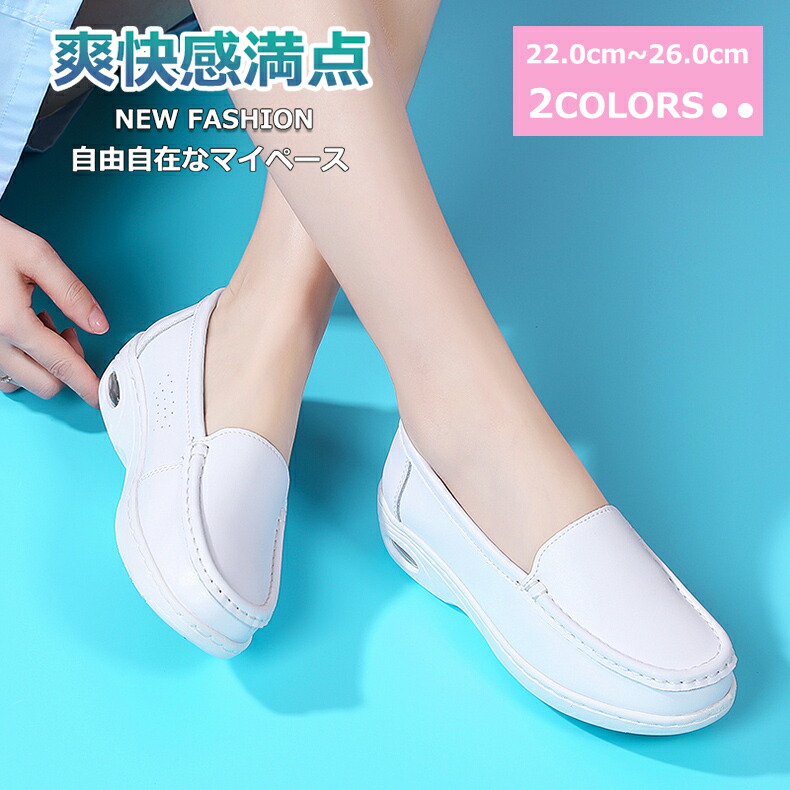 ナースシューズ 厚底 疲れない靴 レディース スニーカー スリッポン インソール フラット インソール靴 作業靴 無地 歩きやすい 履きやすい ウォーキングシューズ 静音 白 婦人 美脚 看 疲れない