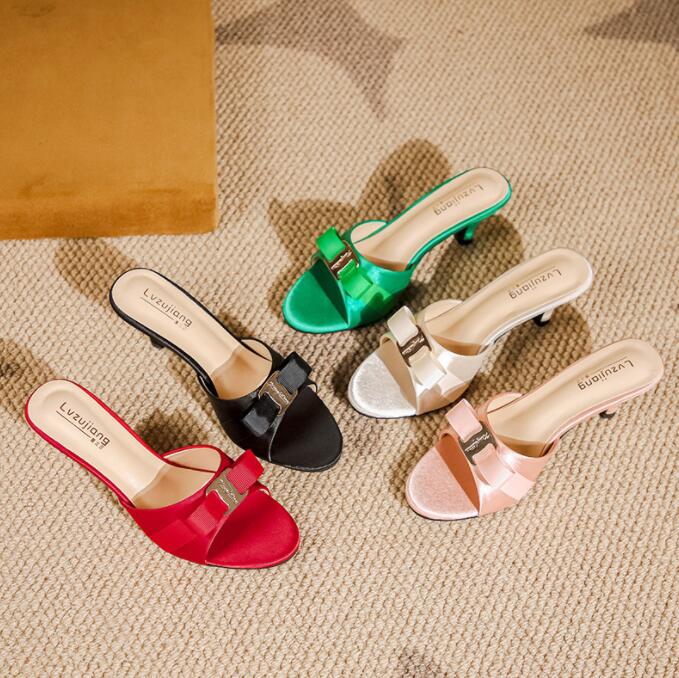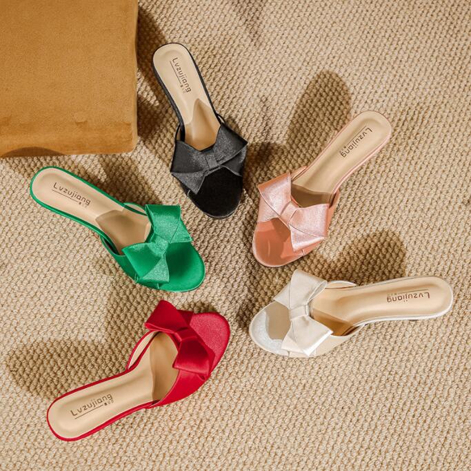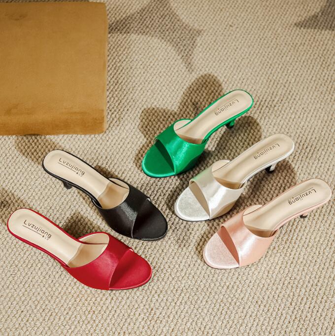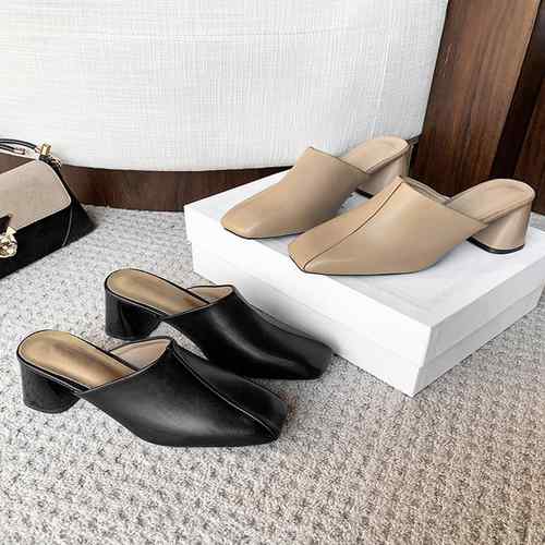 ミドルヒールミュール 6ヒール レディース 靴 美脚 レザーサンダル パーティ ヒール つっかけ 大きいサイズ 小さい 痛くない 歩きやすい