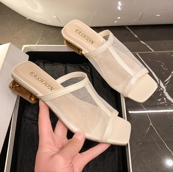 ミュール 履きやすい 歩きやすい シースルー スクエアトゥ シアー サンダル 4センチヒール 美脚 レディース 痛くない 安定感 春夏 シンプル 普段使い オフィス 太ヒール