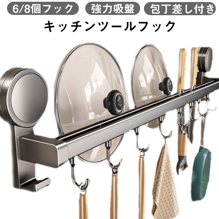 吸盤フック キッチンツールフック 強力フック 6連 8連ステンレス 防水 キッチン お風呂 ツール タオルハンガー 浴室用ラック タオルフック 壁掛けフック 洗面所 洗濯機 吊り下げ
