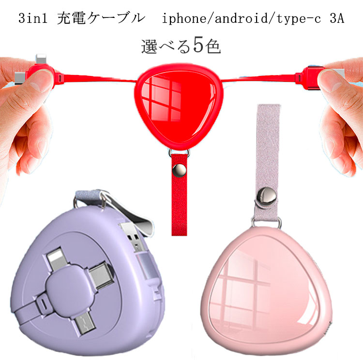 3a急速充電 巻き取り c iphone充電器 ライトニングケーブル 8 ル Micro Type ケーブルiPhone iPhone 13 promax Android USBケーブル 13mini