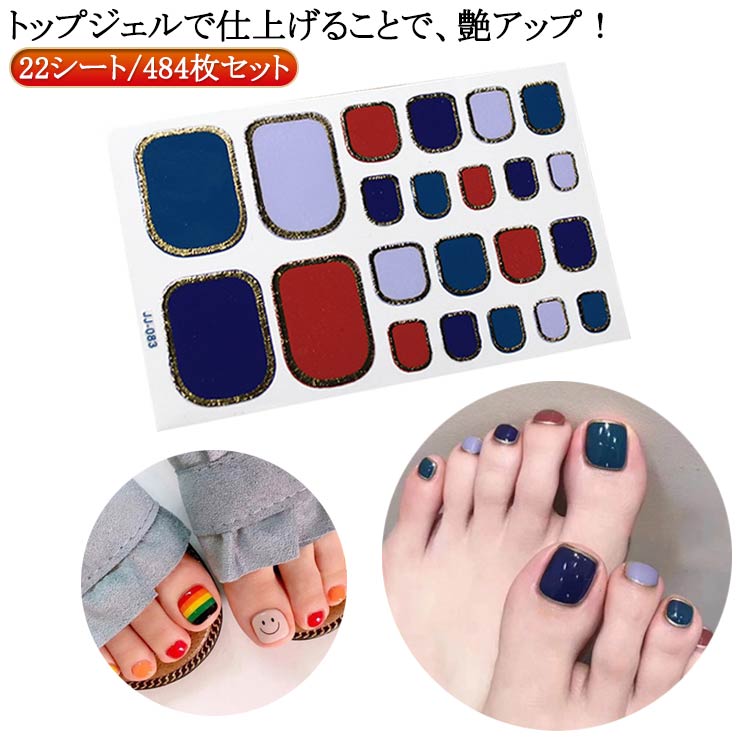 ジェルネイルシール 貼るだけ フット ペディキュア ジェルネイルステッカー フルカバータイプネイルシール ネイルシール 22シート ネイル 貼るだけで完成 フットネ 484枚セット