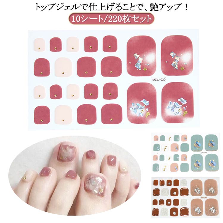 10シート 220枚セット 貼るだけ ペディキュア ジェルネイルシール ネイルシール フルカバータイプネイルシール ネイル 貼るだけで完成 フ ジェルネイルステッカー