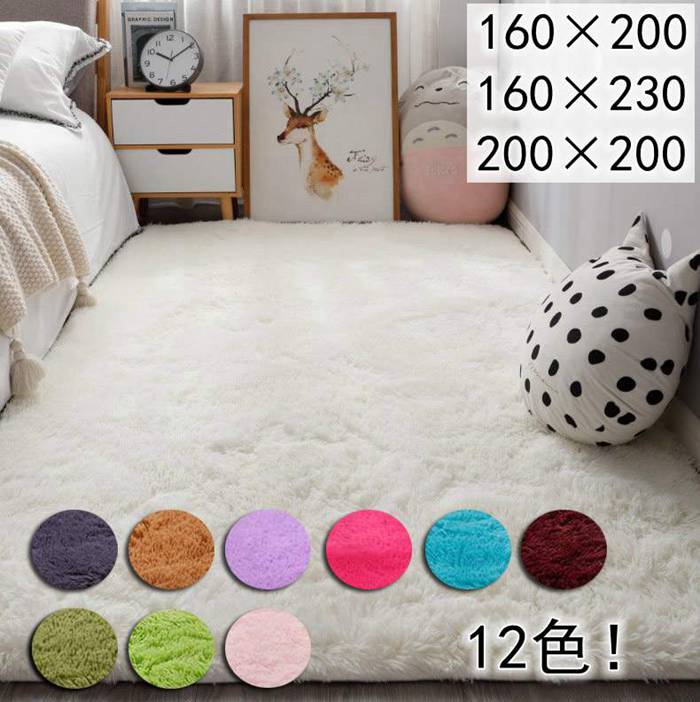 カーペット 絨毯 北欧風 洗える おしゃれ ラグ ラグマット 長方形 角型 シャギー オールシーズン 夏 冬 床暖房対応 ホットカーペット対応 滑り止め付 ホワイト ブルー ローズ グリーン ピンク