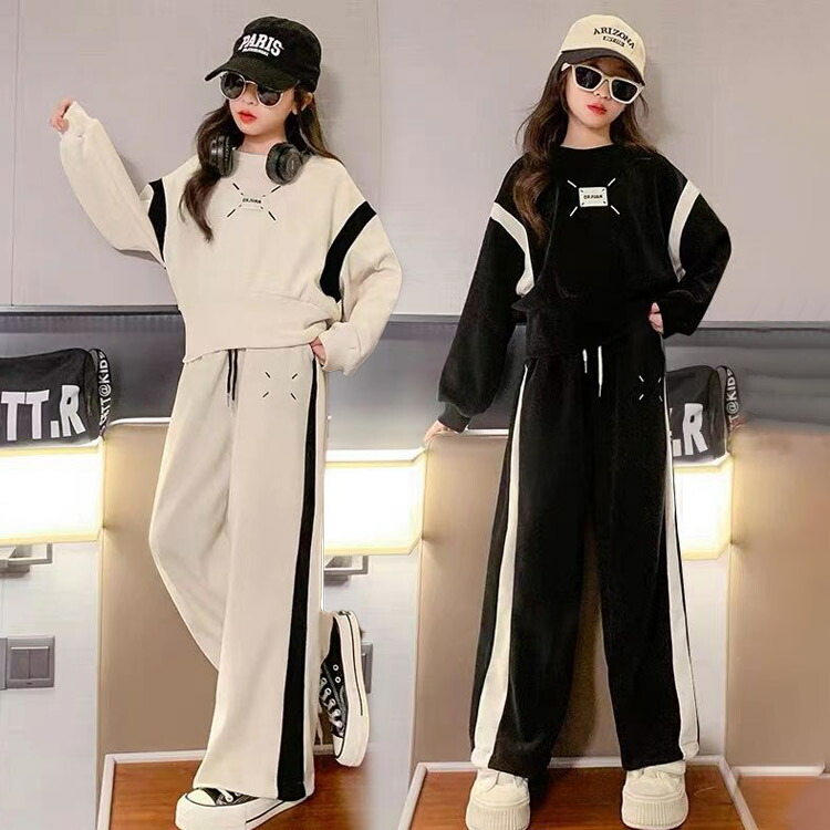 スウェット セットアップ キッズ 女の子 秋 ダンス衣装 ジュニア 上下2点セット トップスプルオーバー ロングズボン 春 冬 長袖 ガールズ トレーナー カジュアル 修学旅行 林 スポーツウェア