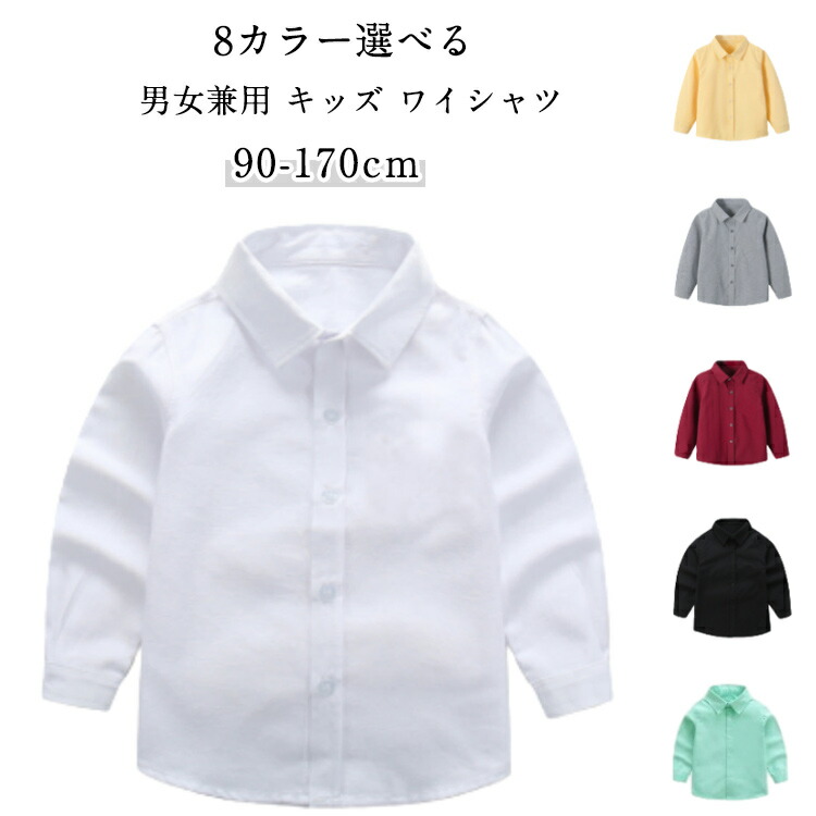 キッズ ワイシャツ 子供 長袖 スクールシャツ フォーマル ブラウス 男の子 無地 入学式 卒業式 結婚式 発表会 七五三 90-170